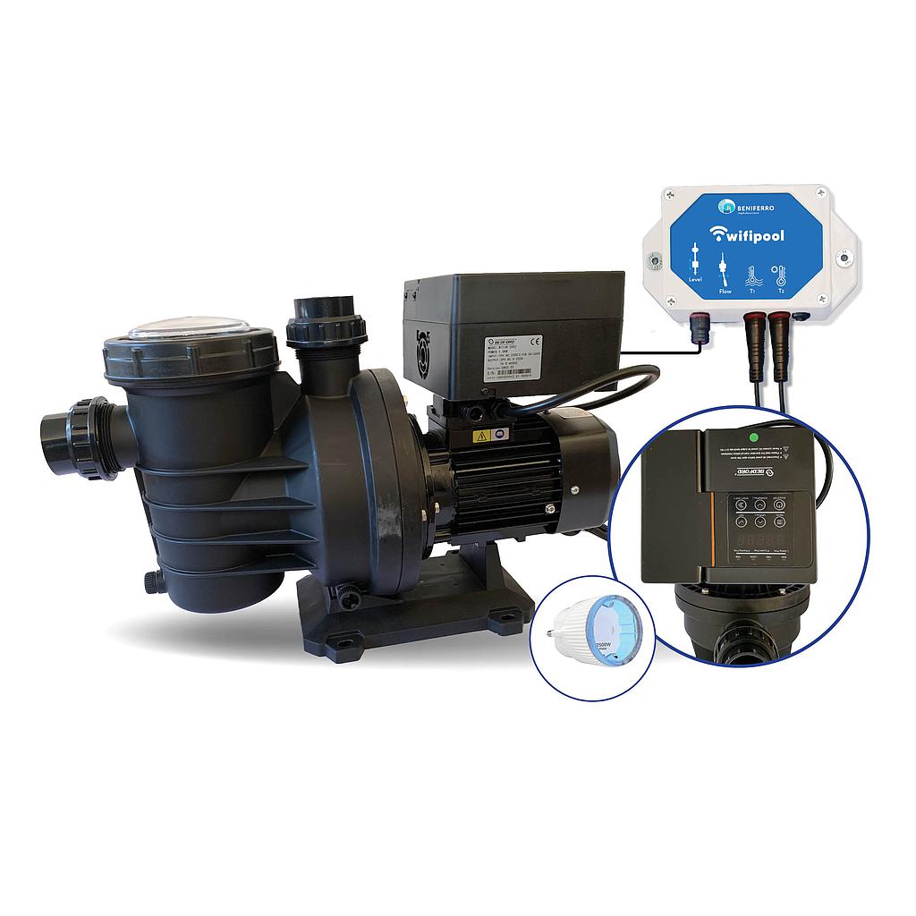Met een frequentieregelaar kun je de snelheid van de filterpomp verlagen. Dit betekent minder energieverbruik, terwijl filtratie en zuivering beter werken bij lagere debietniveaus. De volledige kracht van de pomp is alleen nodig bij het opstarten, terugspoelen en reinigen/afzuigen!